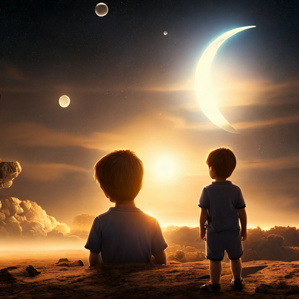 Young boy looking to the philistine and moon from space x
