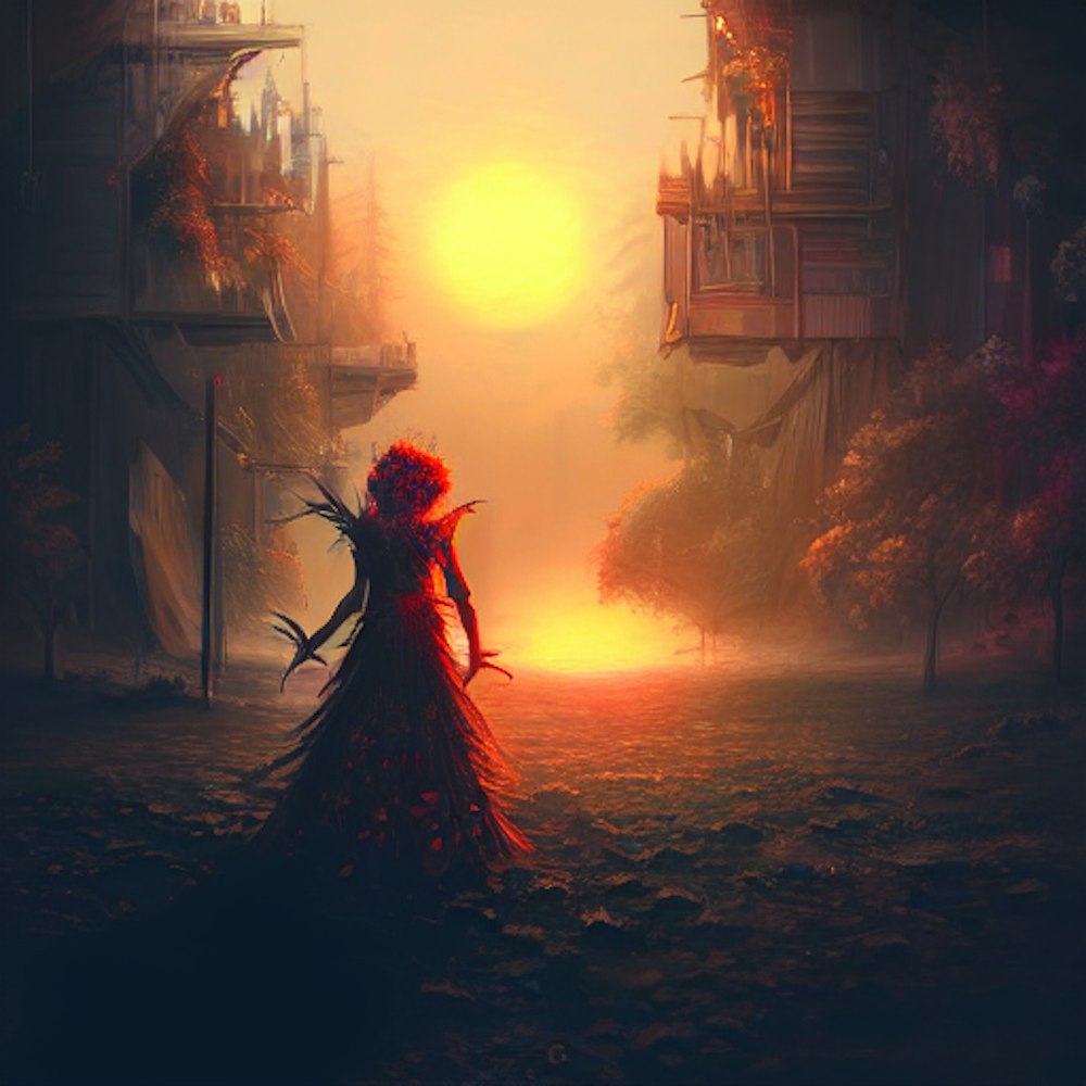 Magic trick, fantasy character portrait, sunrise landscape, ultra realistic, cinematic, concept art, wide angle, intricate details, floral wallpaper, cyberpunk