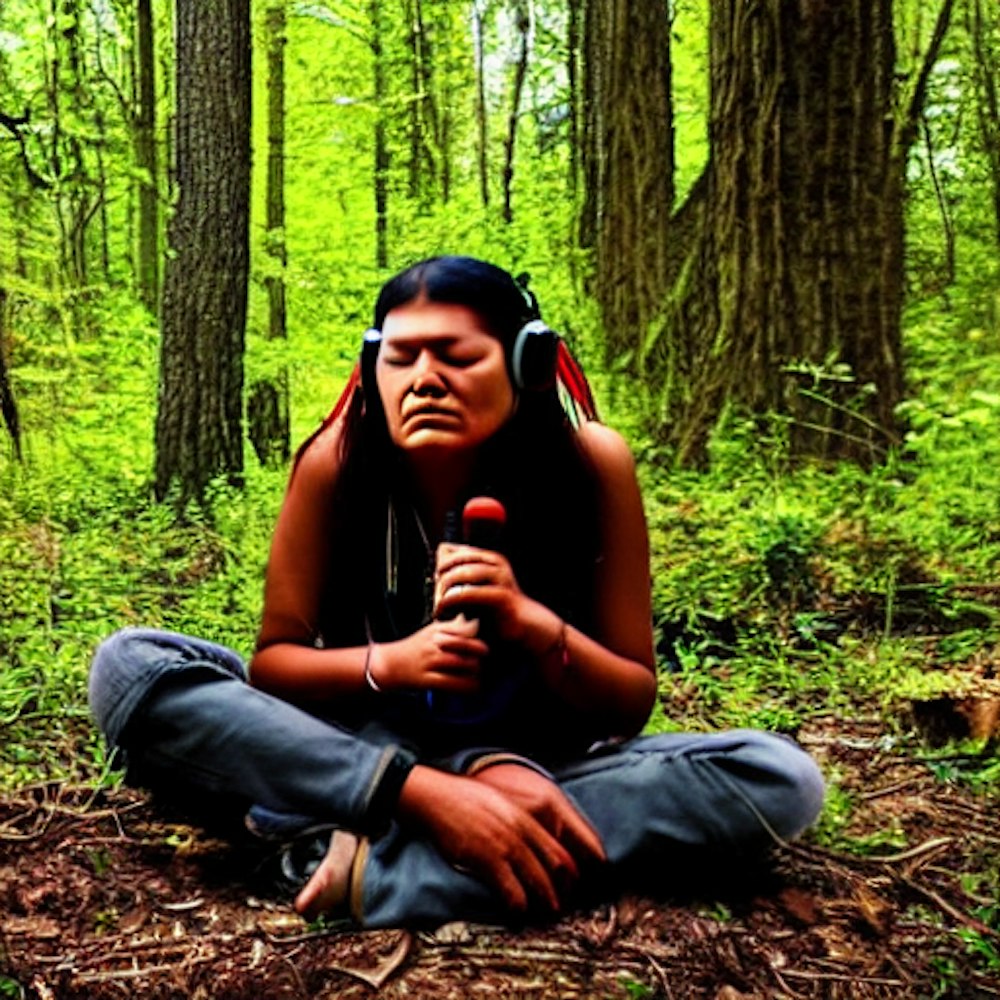 native listening to music in the woods