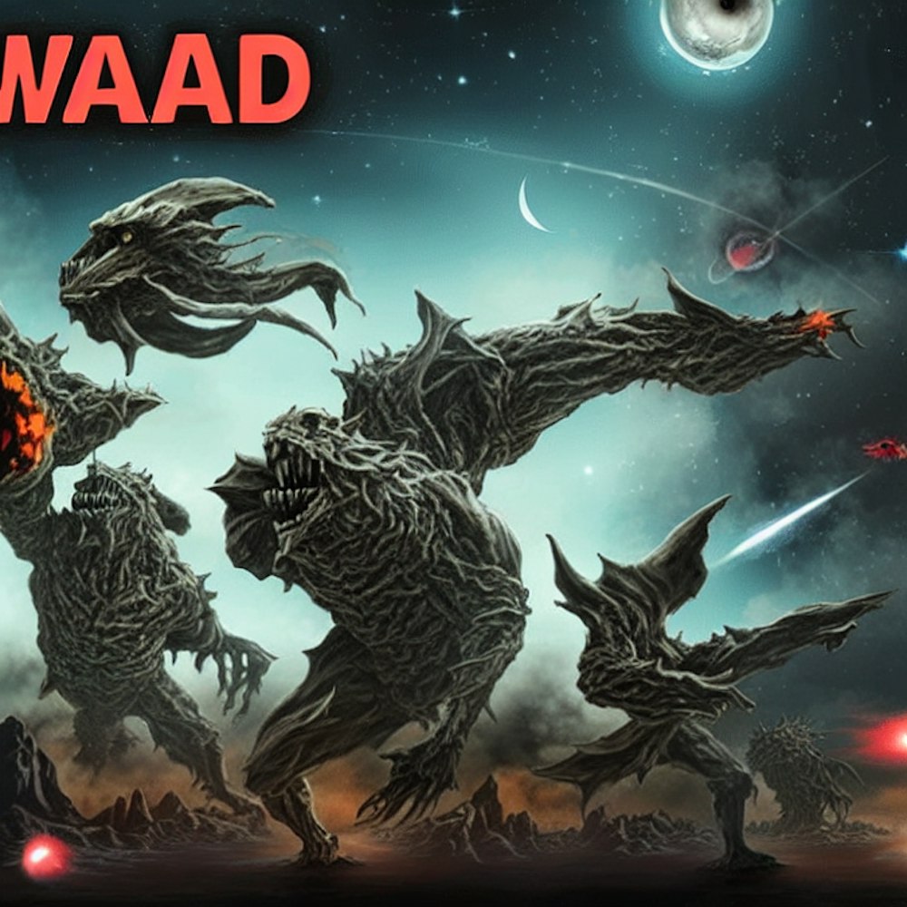 war . monsters. outside space . dark sky