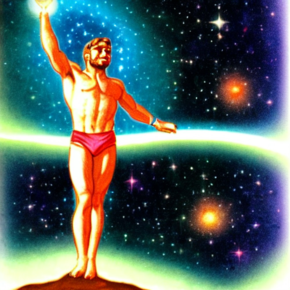 Lifted into cosmic light, man