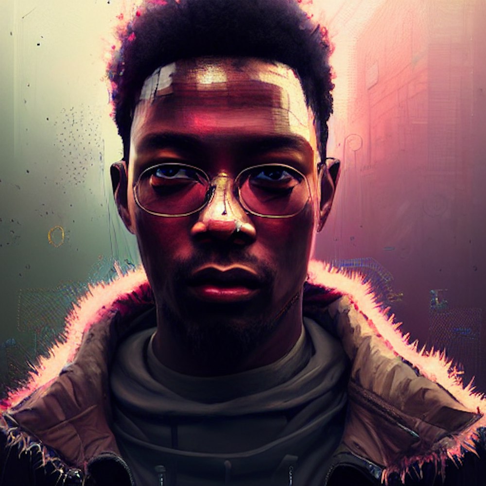 Insanely detailed photographic portrait of a darkly colored man in tech wear facing away, an intricate and hyperdetailed painting by Ismail Inceoglu, Huang Guangjian CGSociety, ZBrush Central, fantasy art, album cover art