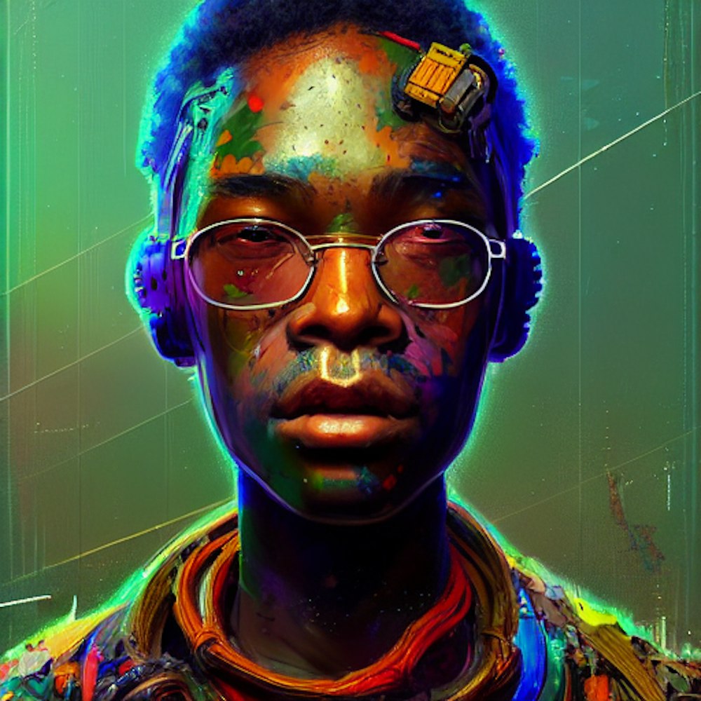 Insanely detailed photographic portrait of a deeply colored person in tech wear far away, an intricate and hyperdetailed painting by Ismail Inceoglu, Huang Guangjian CGSociety, ZBrush Central, fantasy art, album cover art