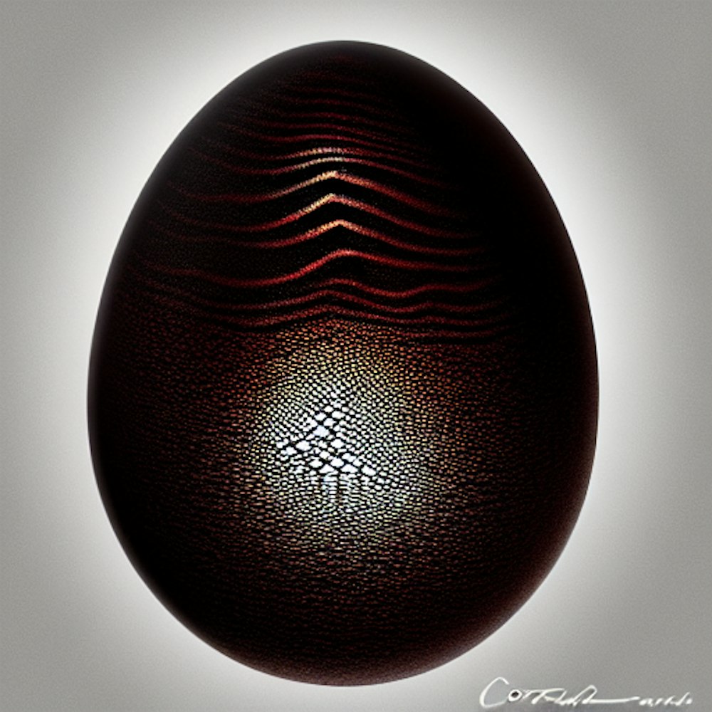 Insanely detailed photographic portrait of a deep dark colored egg made of obsidian with dragon scales, mood lighting, rich and intricate painting by Corrado Vanelli