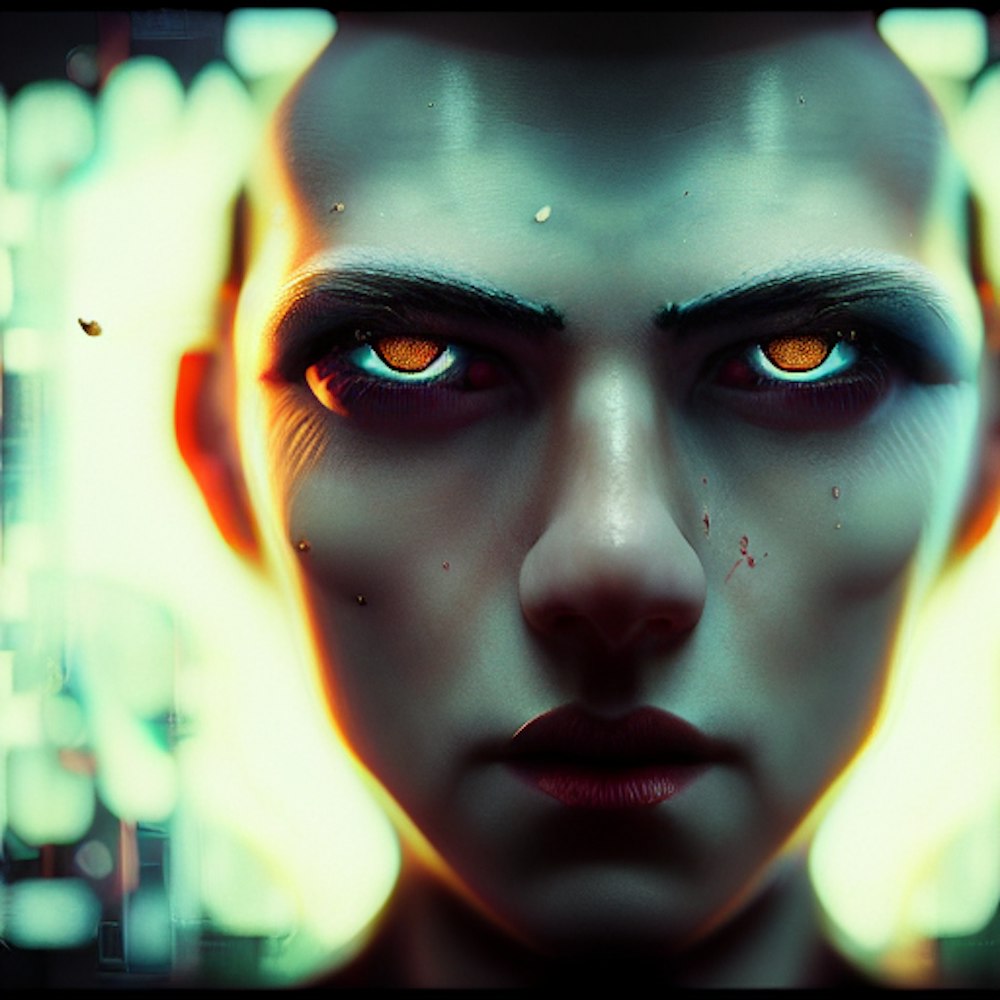 , cinematic lighting, hyper detailed, 50mm portrait, soft lighting, hard rim lighting, finely detailed, make up, serious eyes, David La Chapelle, photography, cel-shaded, photorealistic, intricate design, cyberpunk, steampunk, intriguing, detailed, concept art, futuristic, fog, Greg Rutkowski, Van Gogh, Corrado Vanelli, Dan Seagrave