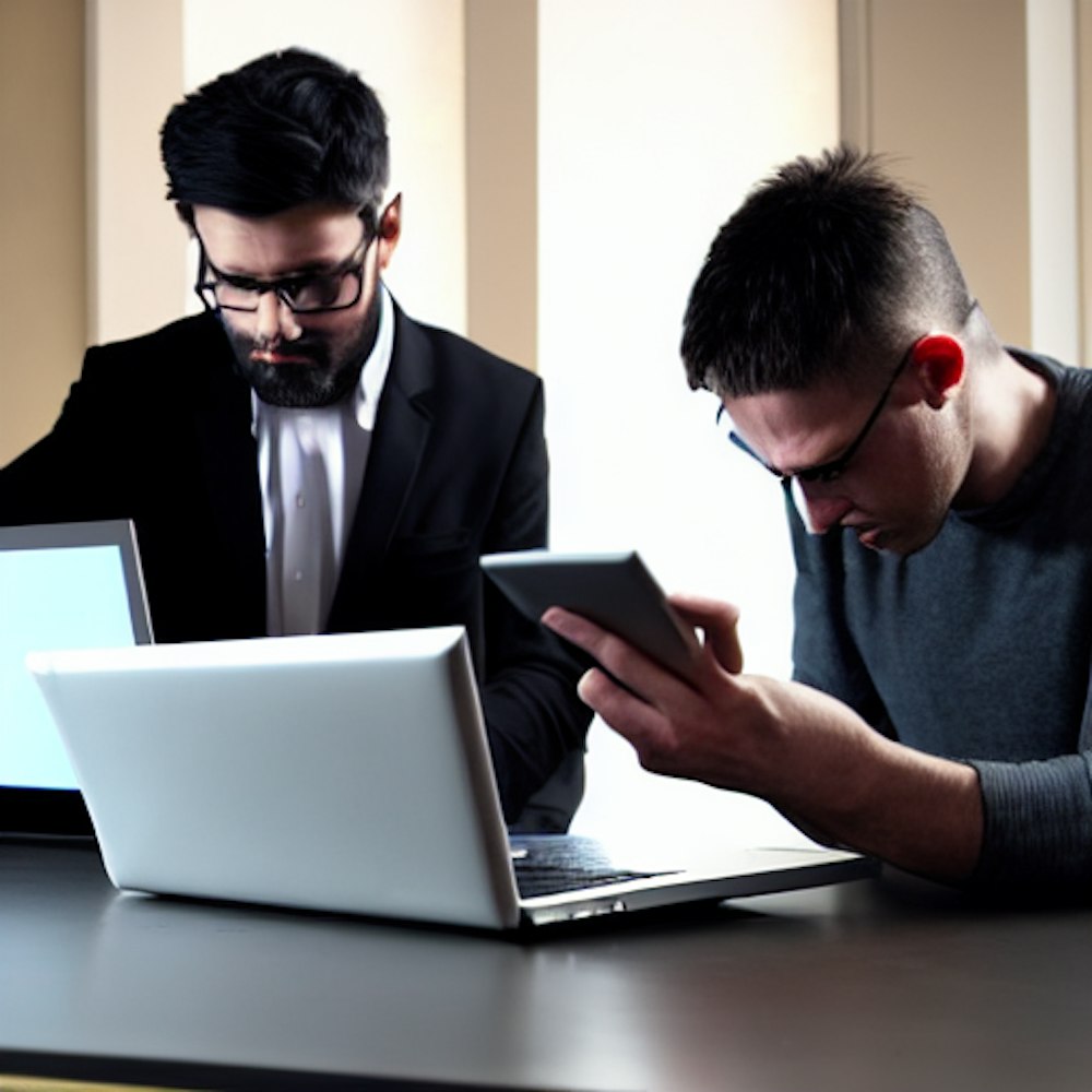 fraudster doing their fraudulent business on their laptops