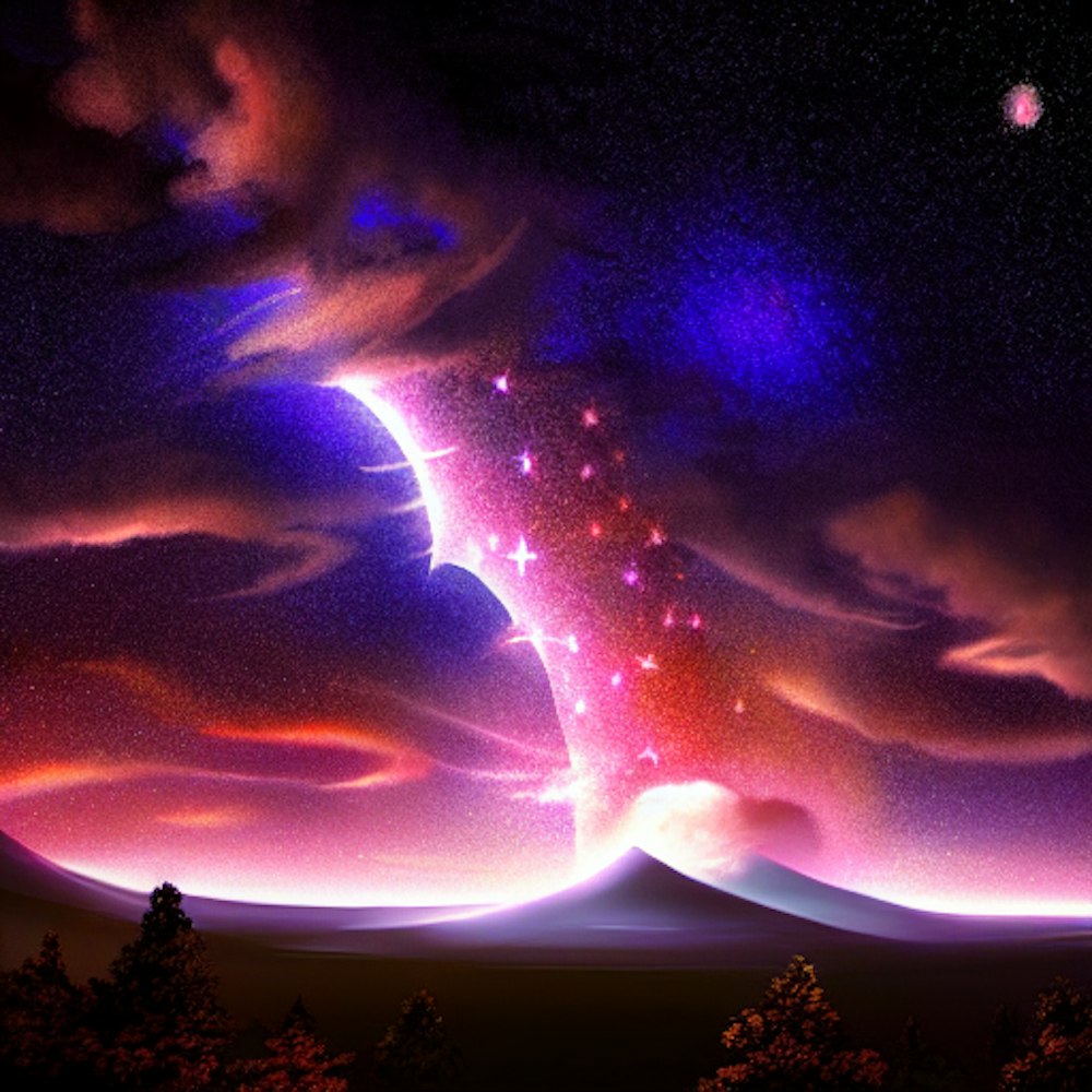 beautiful night sky with rift in it that leads to another dimension, cinematic lighting, fantasy, masterpiece