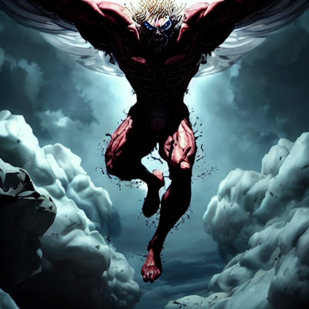 evil godlike being descending from the sky to purge life on earth, finely detailed, photorealistic, hyper detailed
