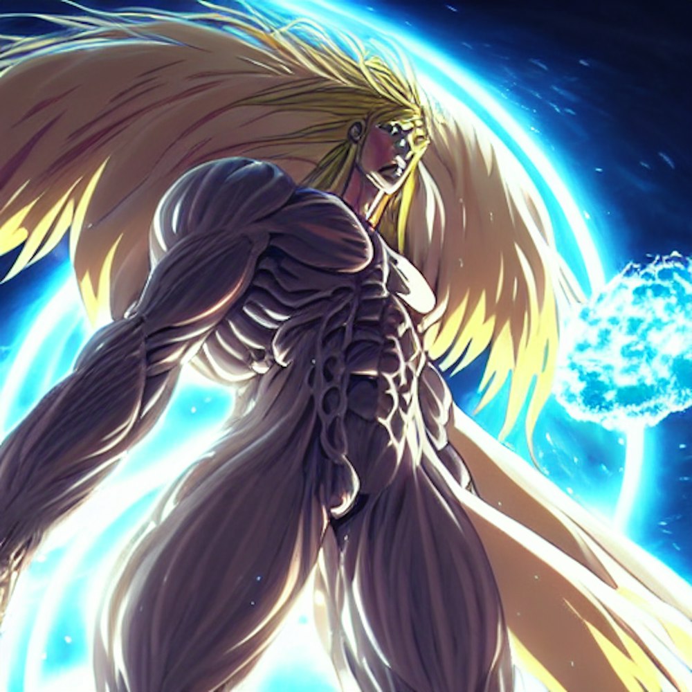 colossal anime character destroying the universe, cinematic lighting, fantasy, masterpiece
