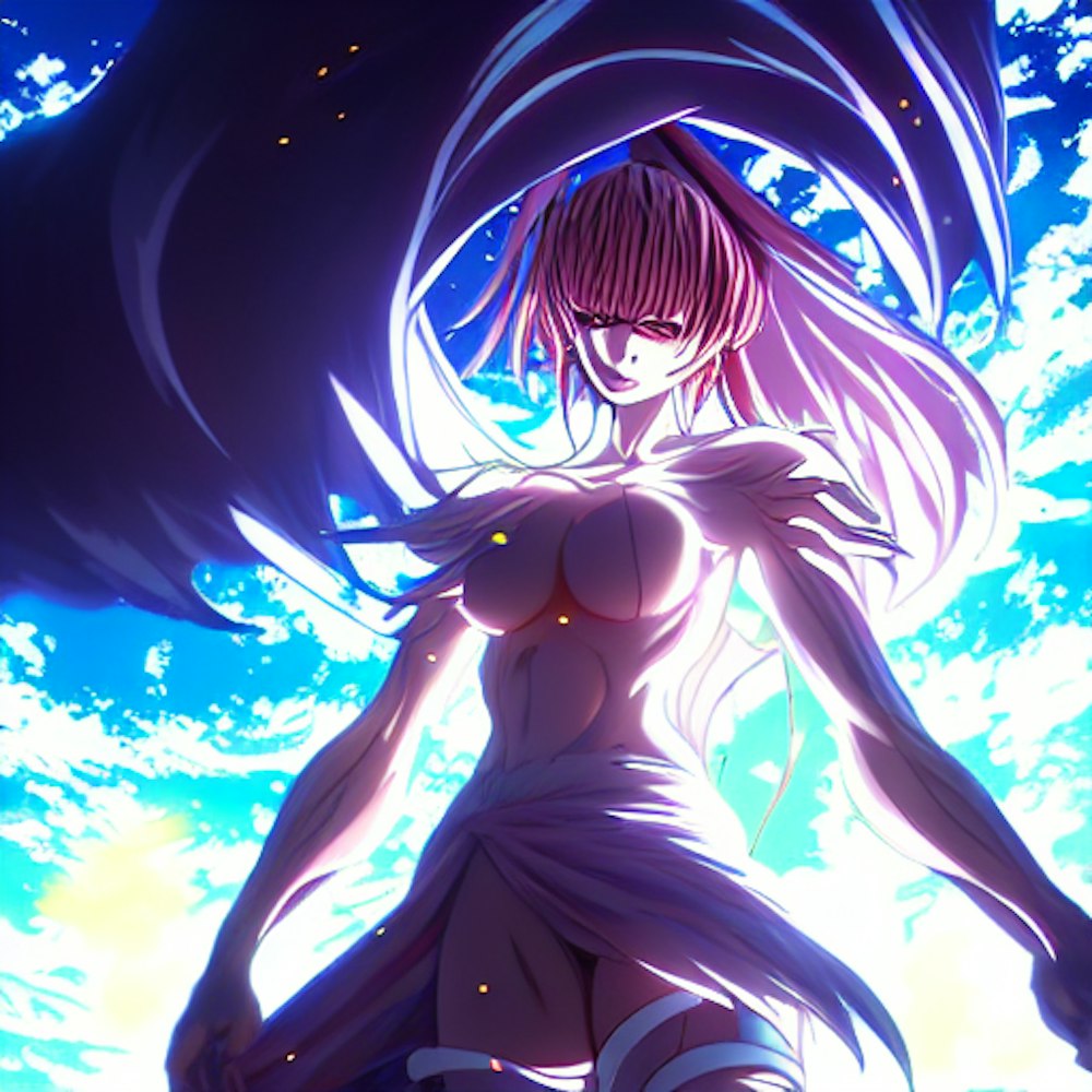 colossal anime character destroying the universe, cinematic lighting, fantasy, masterpiece
