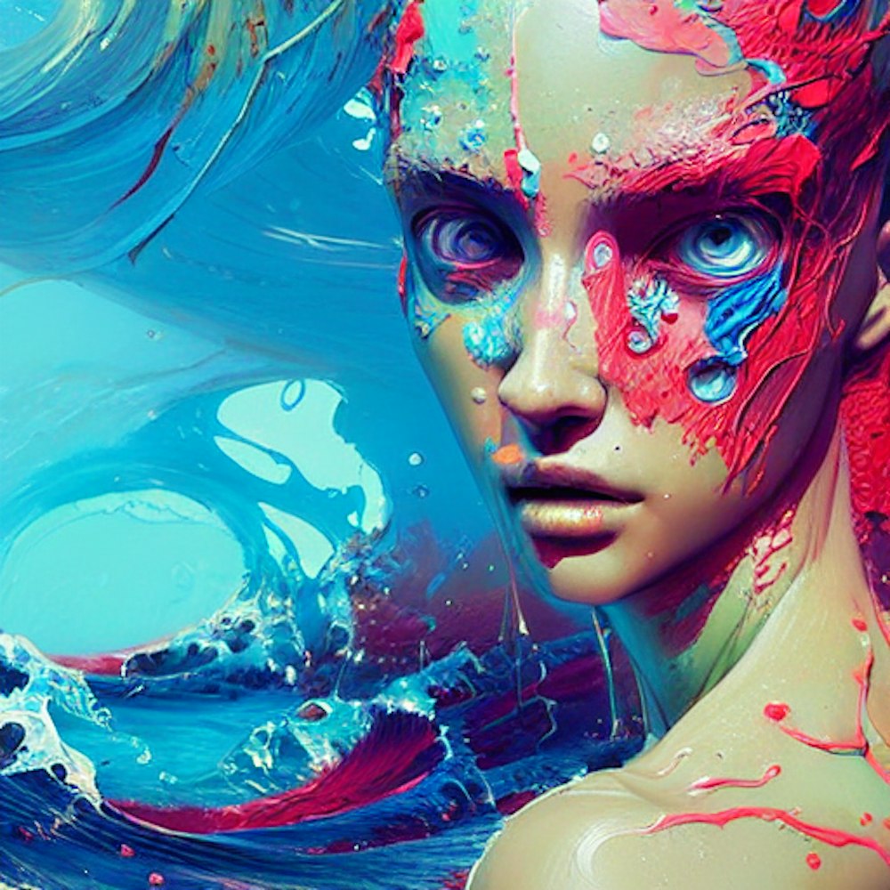 Insanely detailed photographic portrait of a brightly-colored water elemental ocean waves women bare back, an intricate and hyperdetailed painting by Ismail Inceoglu, Huang Guangjian CGSociety, ZBrush Central, fantasy art, album cover art