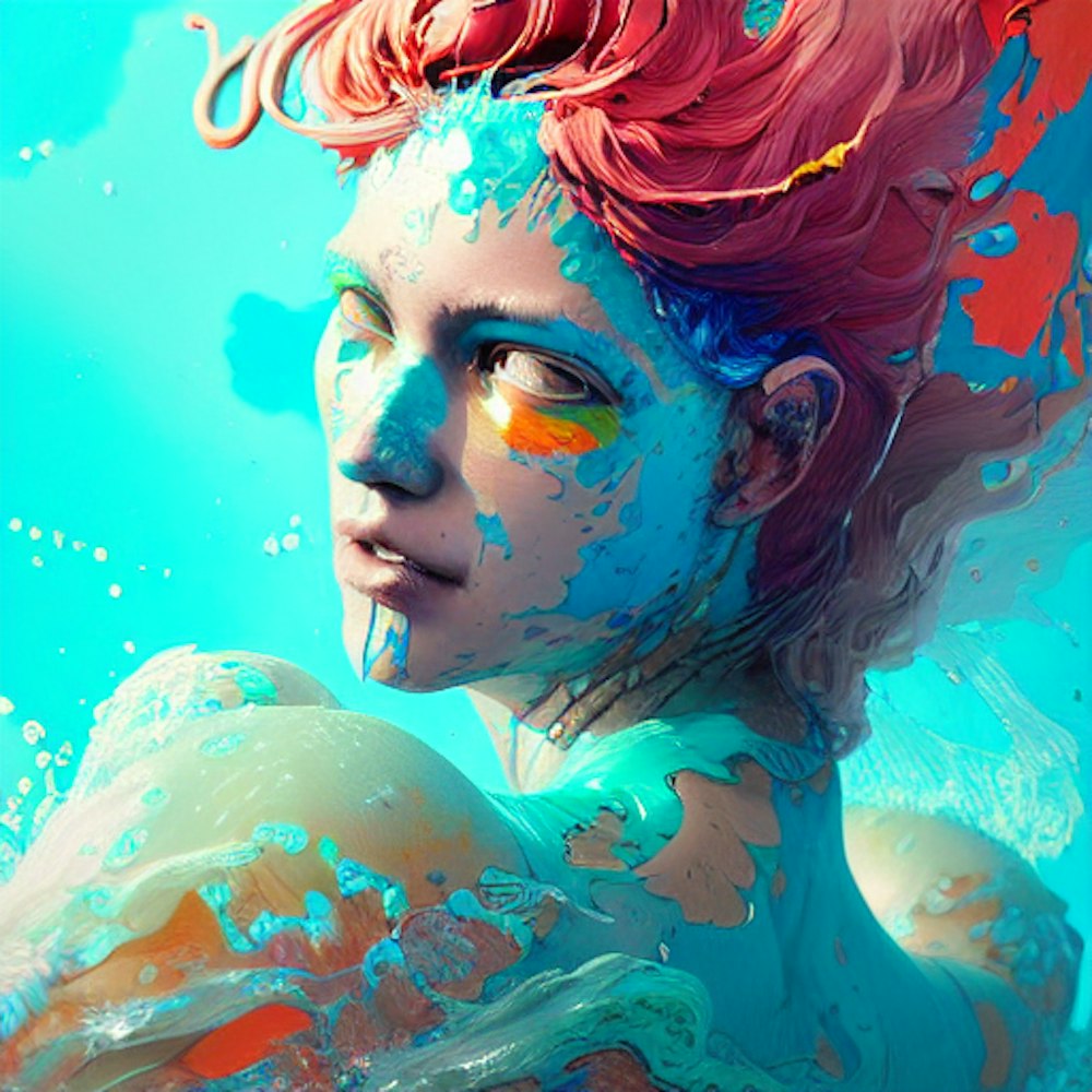Insanely detailed photographic portrait of a brightly-colored water elemental ocean waves women bare back, an intricate and hyperdetailed painting by Ismail Inceoglu, Huang Guangjian CGSociety, ZBrush Central, fantasy art, album cover art
