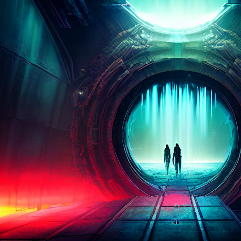 Portal opening to another dimension, cinematic lighting, fog, hyper detailed, futuristic