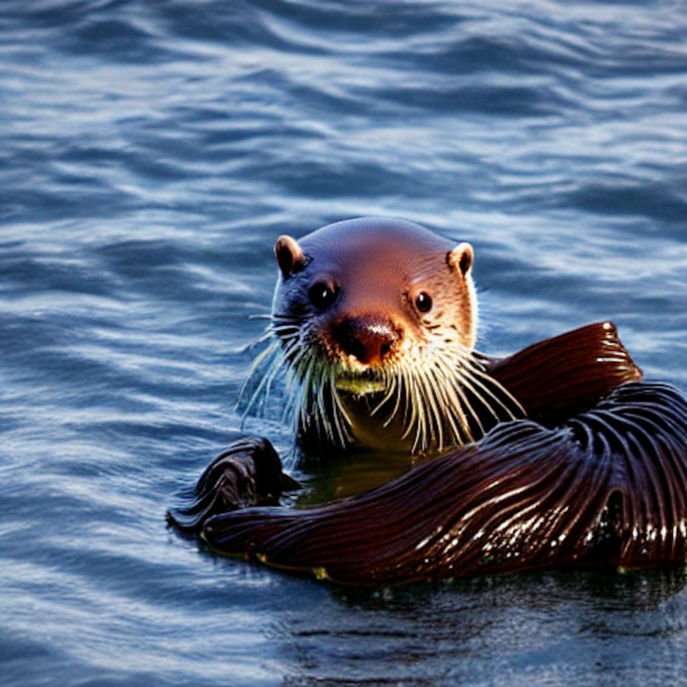 otter protecting kelp from sea urchins