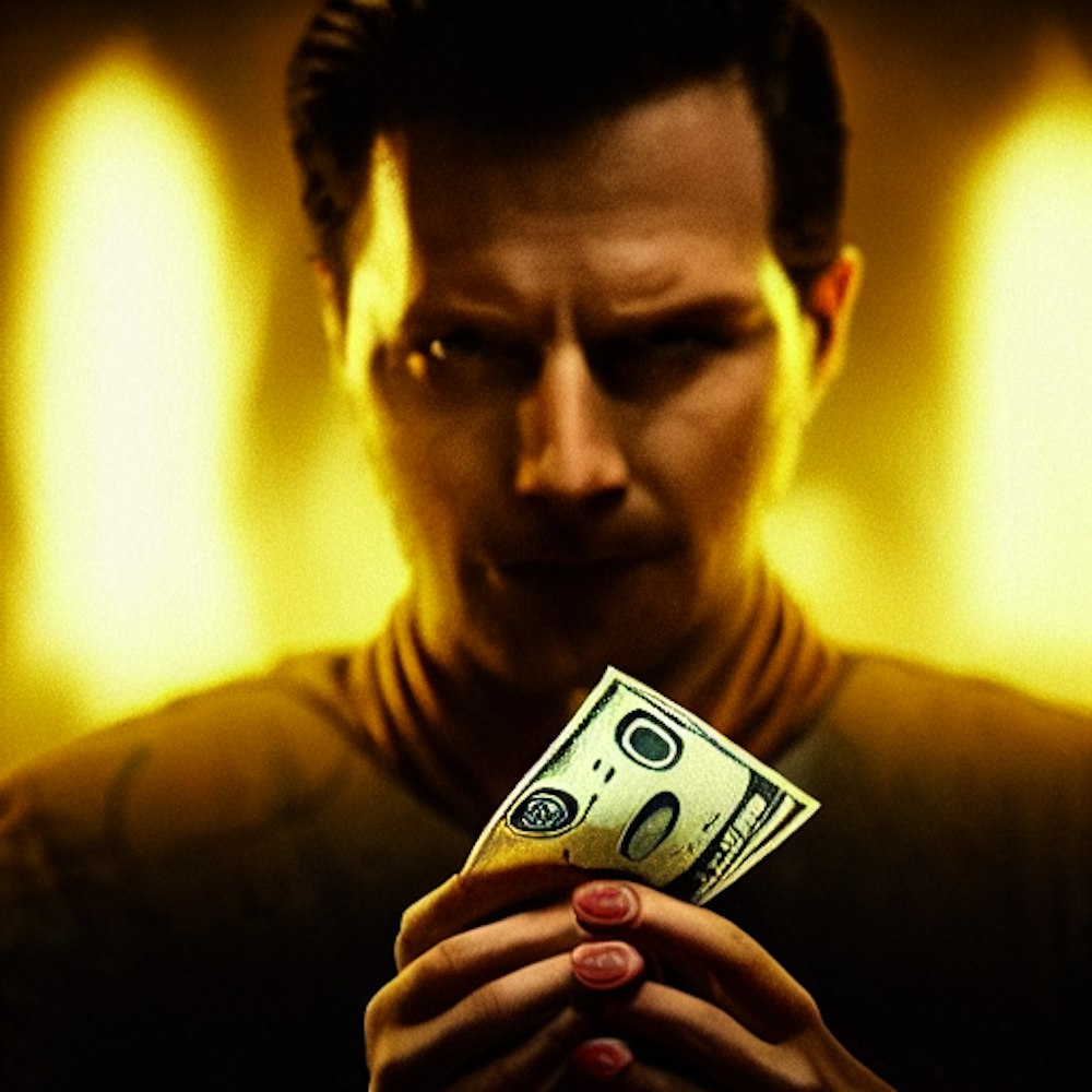 The devil holding money