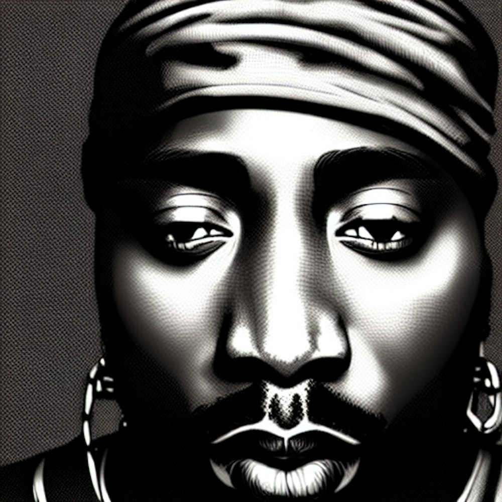 tupac, hyper detailed, cel-shaded, concept art, futuristic