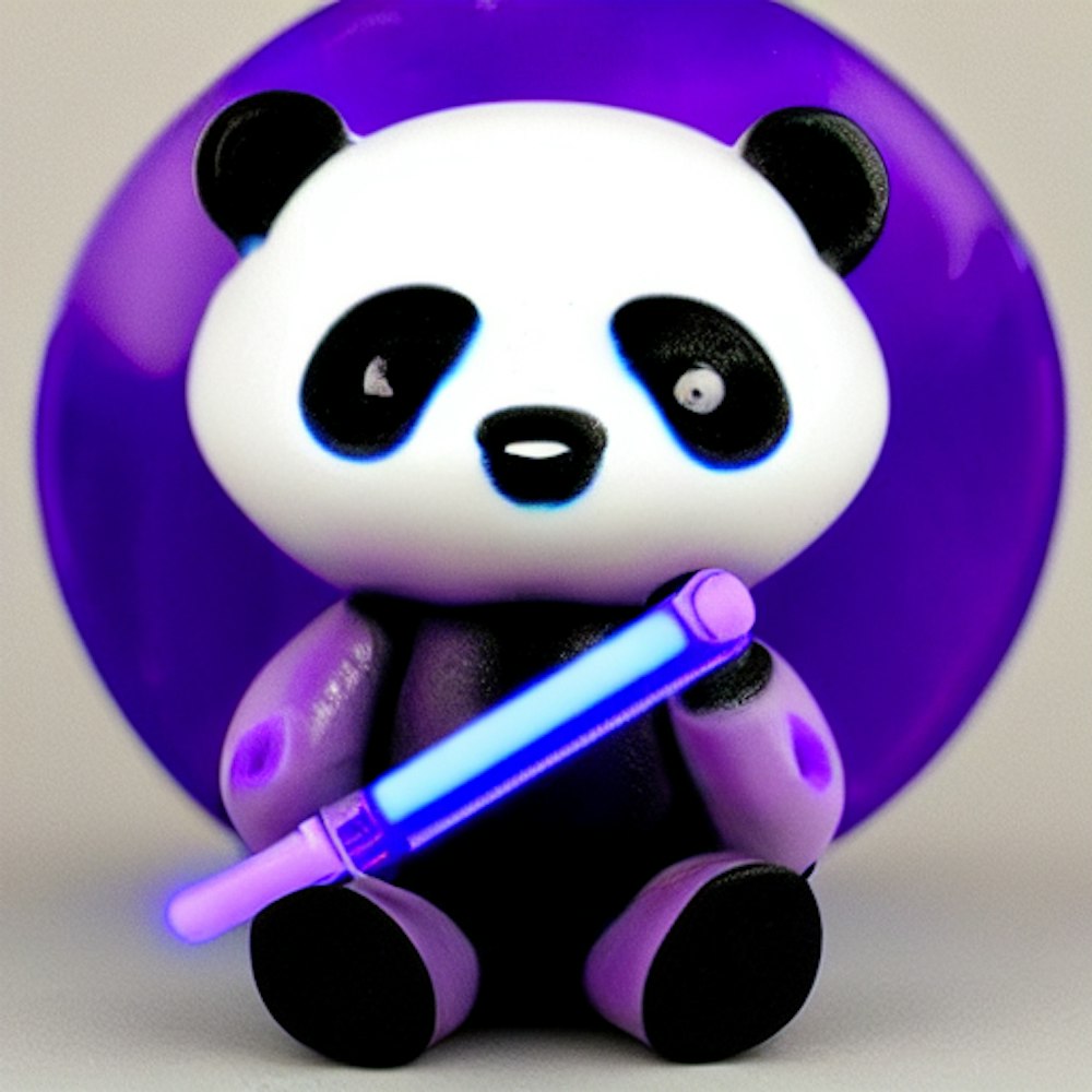 Purple panda with a blue lightsaber