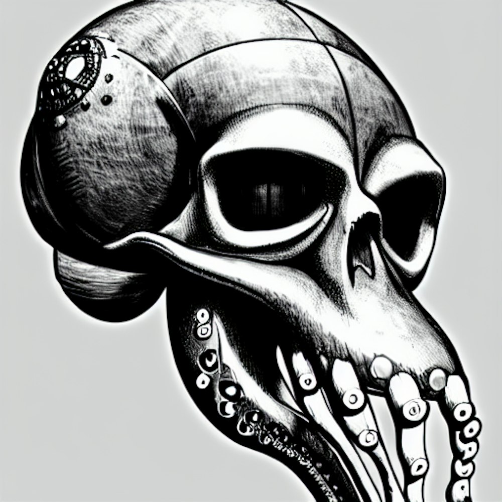 octopus wearing a skull mask, finely detailed, cyberpunk