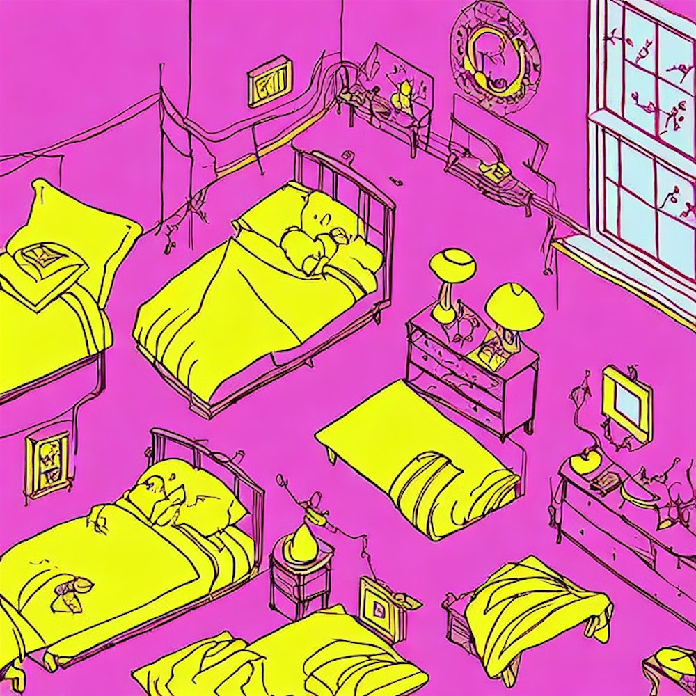 2 people sleep in separate rooms but are dreaming together lofi in pink and yellow �