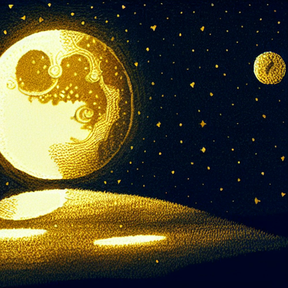 moon, love, soft lighting, hyper detailed, intriguing, gold, lofi
