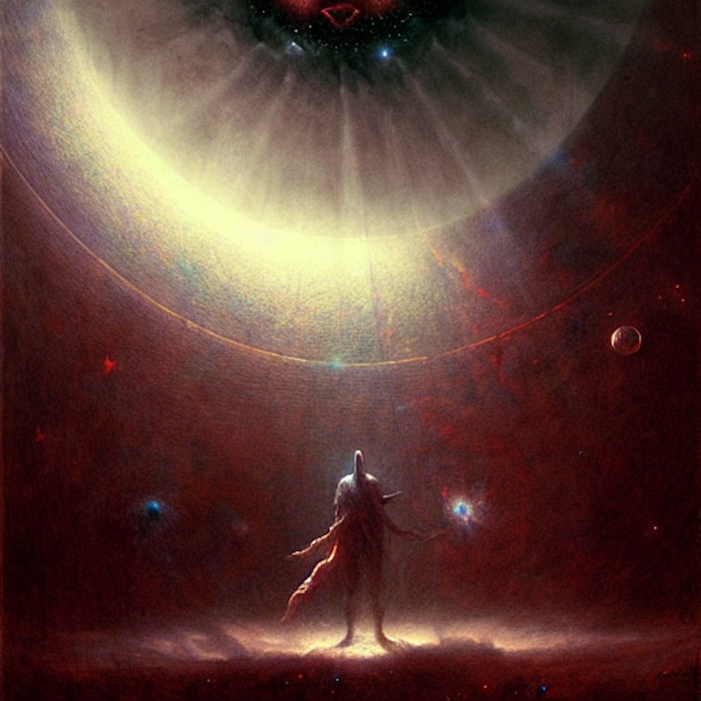 Evil clown of creation, heaven, surreal, space, light rays, galaxy, space, stars, comet, horror Gustave Doré Greg Rutkowski,
