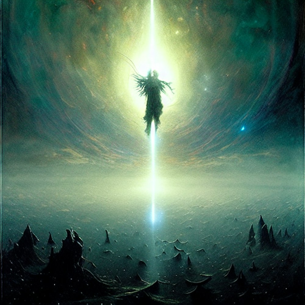 Evil clown of creation, heaven, surreal, space, light rays, galaxy, space, stars, comet, horror Gustave Doré Greg Rutkowski,