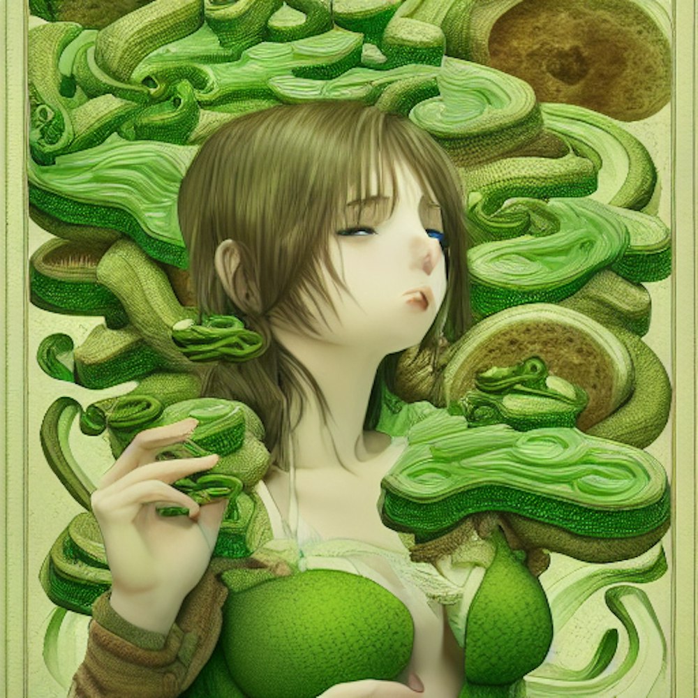 gluttony, emotions, sadness, green plains, female