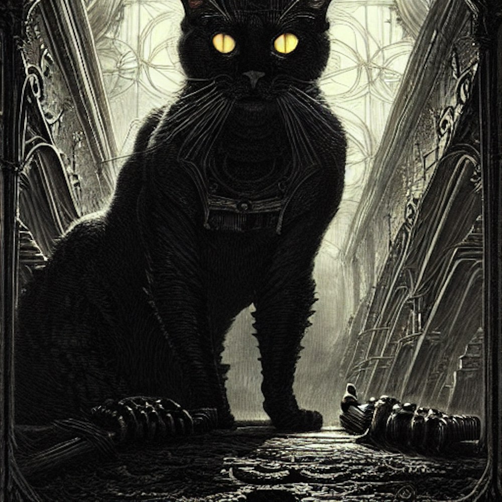 Black cat, monster,, steampunk, hyper detailed, intricate design
