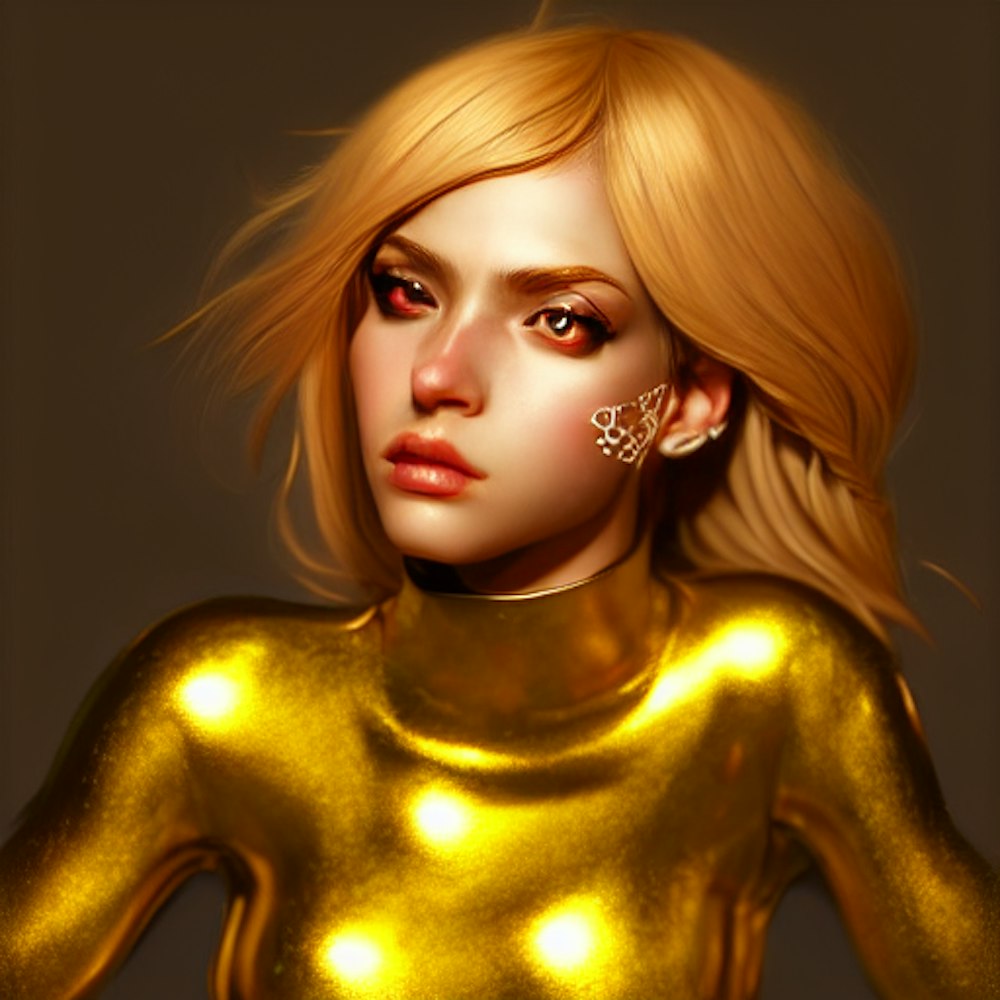 gold girl, hyper detailed, cinematic lighting, detailed, photorealistic, fantasy, hard rim lighting, photography, concept art