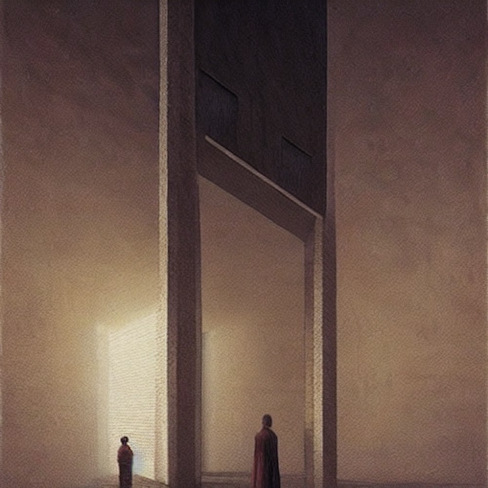 Infinite empty apartment complex, night, by Dario Puggioni, Bom.K, Ally Burke, Zdzislaw Beksinski