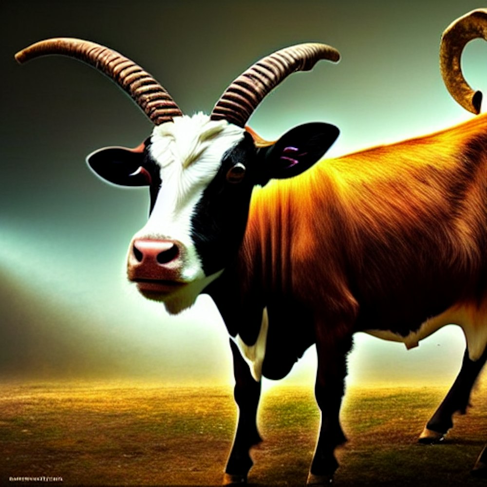 A cow eating a goat, futuristic, cyberpunk, steampunk