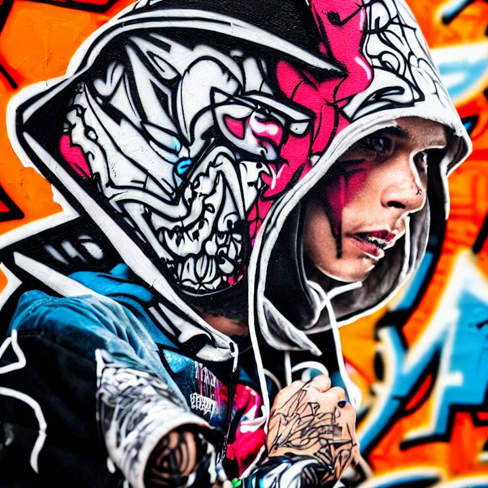Graffiti artist wearing a hood