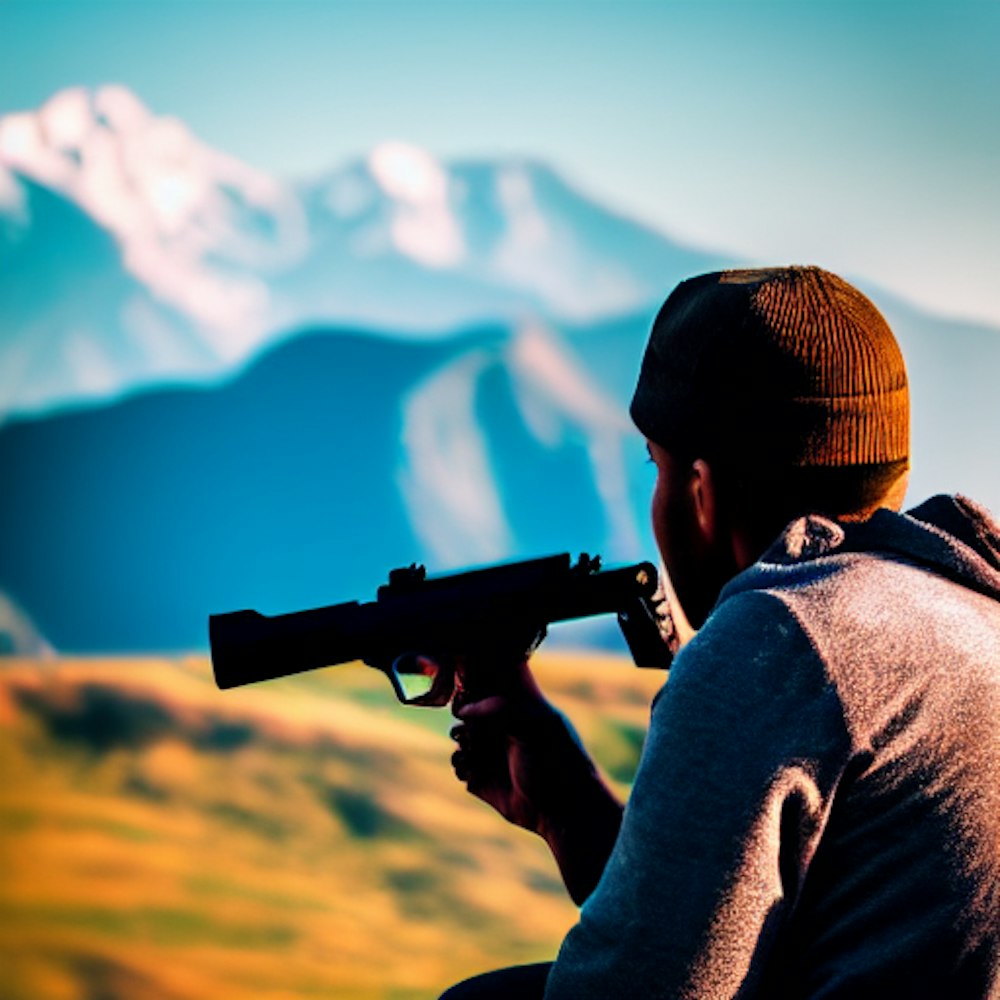 Mountains, hilltop, gun, solitude