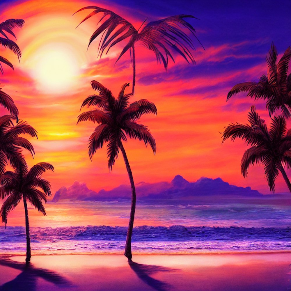 beach view sunset palm tree