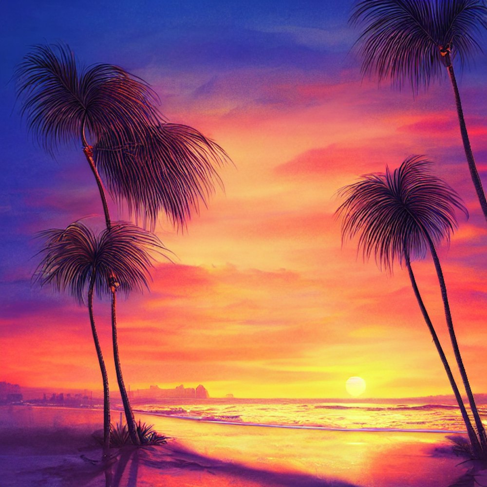 los angeles beach view sunset palm tree