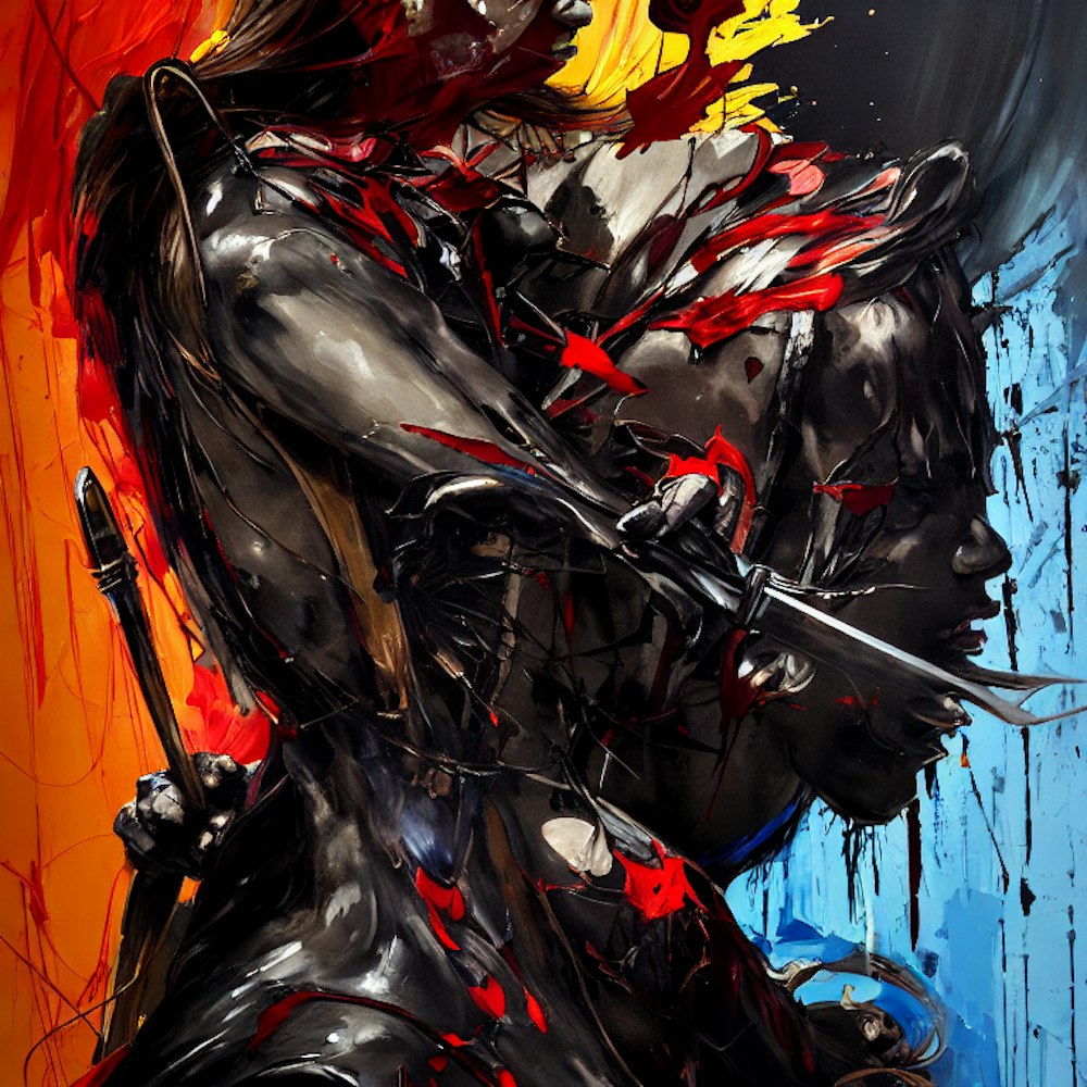 Portrait, An emotional oil painting of a Shadow figure with a sword, Dark soul. Vibrant colors, expressive brushstrokes, Scary composition, intense emotions, allegorical., olpntng style, akihiko yoshida, greg tocchini, greg rutkowsk, oil painting, heavy strokes, paint dripping