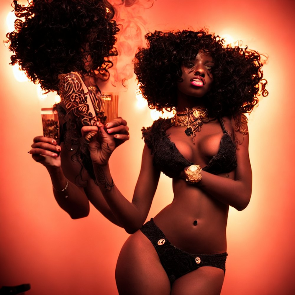 sexy black girls with curly hair party money smoke marijuana beautiful women in club crowd of ladies