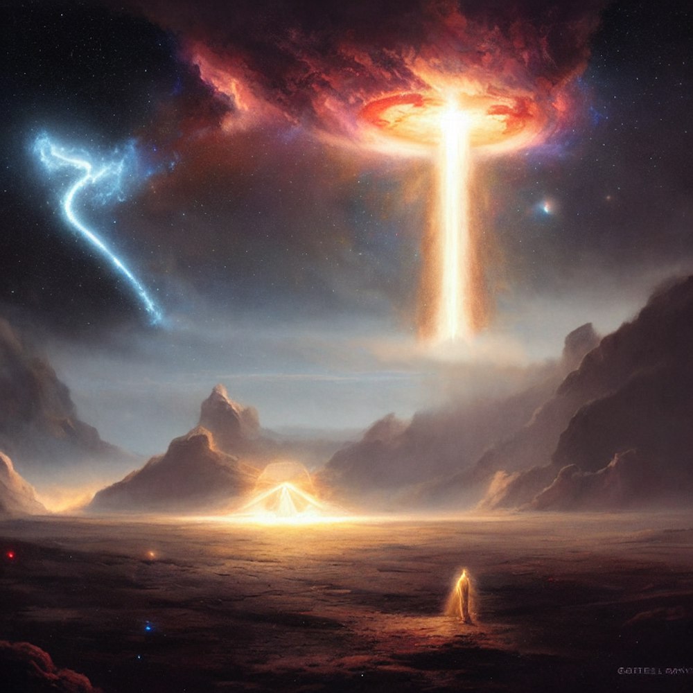 Gods of creation, heaven, surreal, space, light rays, galaxy, space, stars, comet, Greg Rutkowski, James Gurney