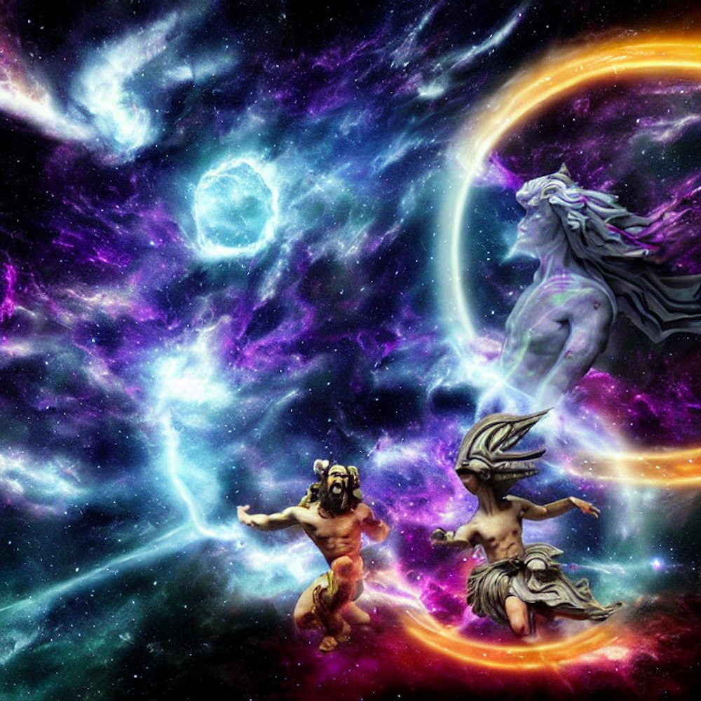 Gods of creation falling through space