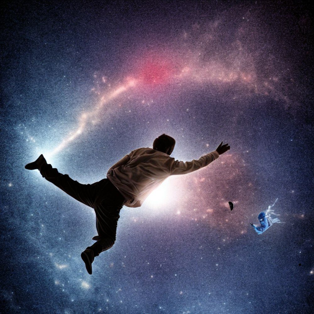 man falling through space