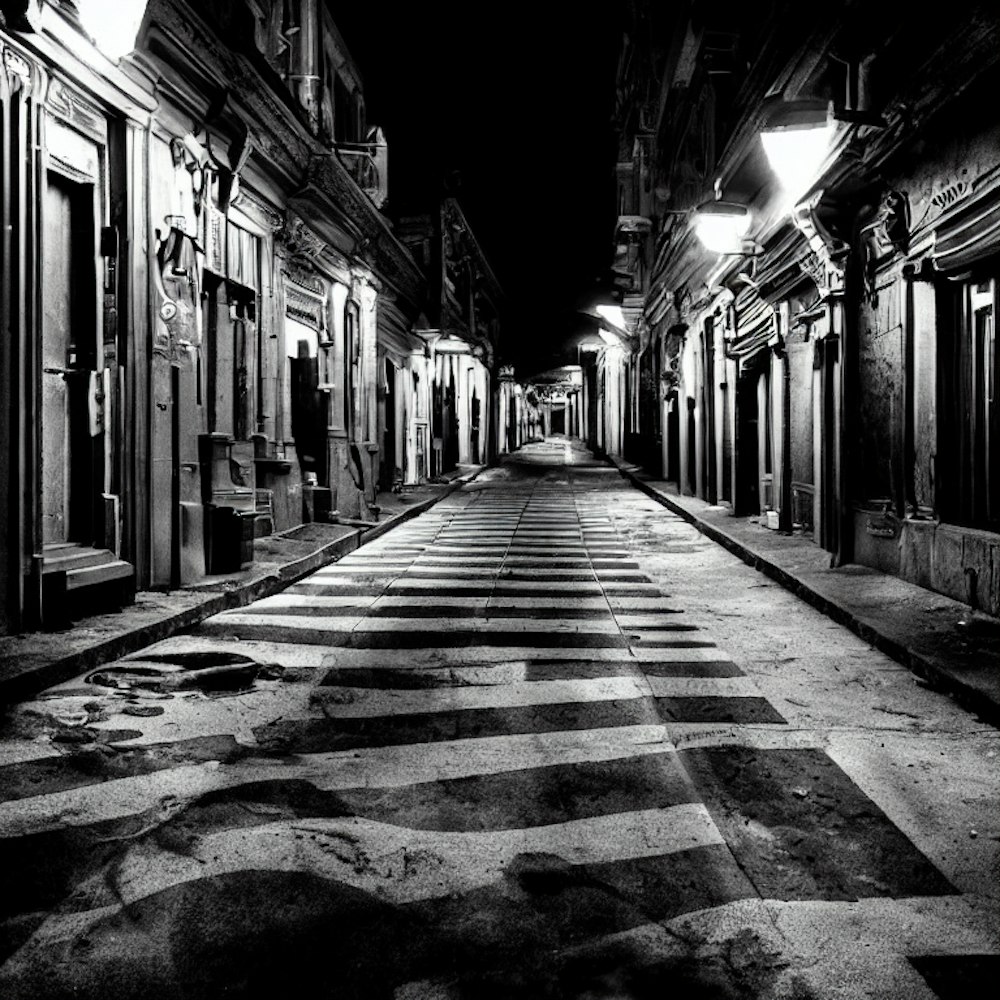 black and white noir sidewalk