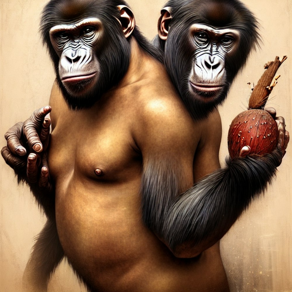 ancient ape holding a coconut