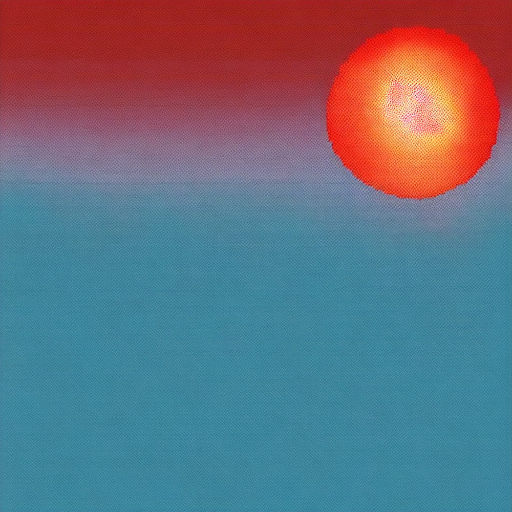 24x24 pixel art drawing a red sunset over a nice blue ocean