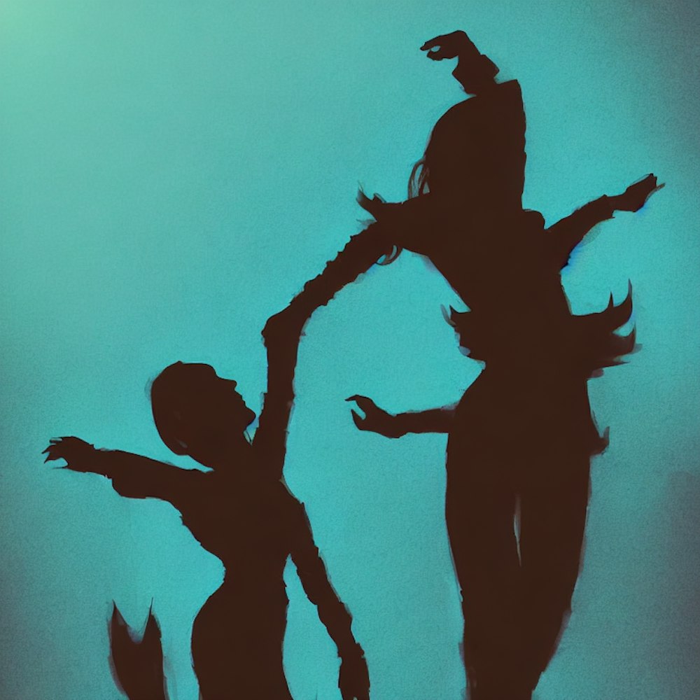 chill house-dance electronic music. dancing figure, sillhouette, beautiful woman, lofi color drop art for electronic chill music