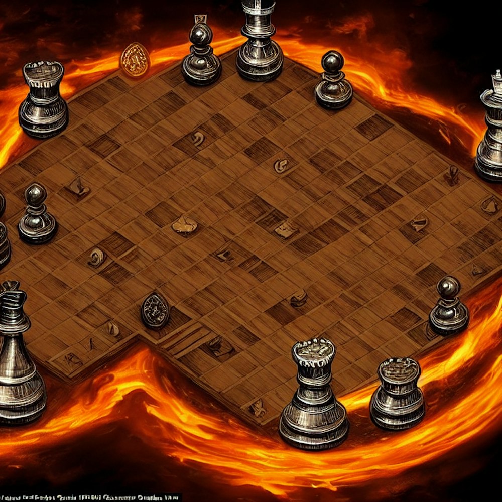 Pawn from chess in the middle of a ring of fire