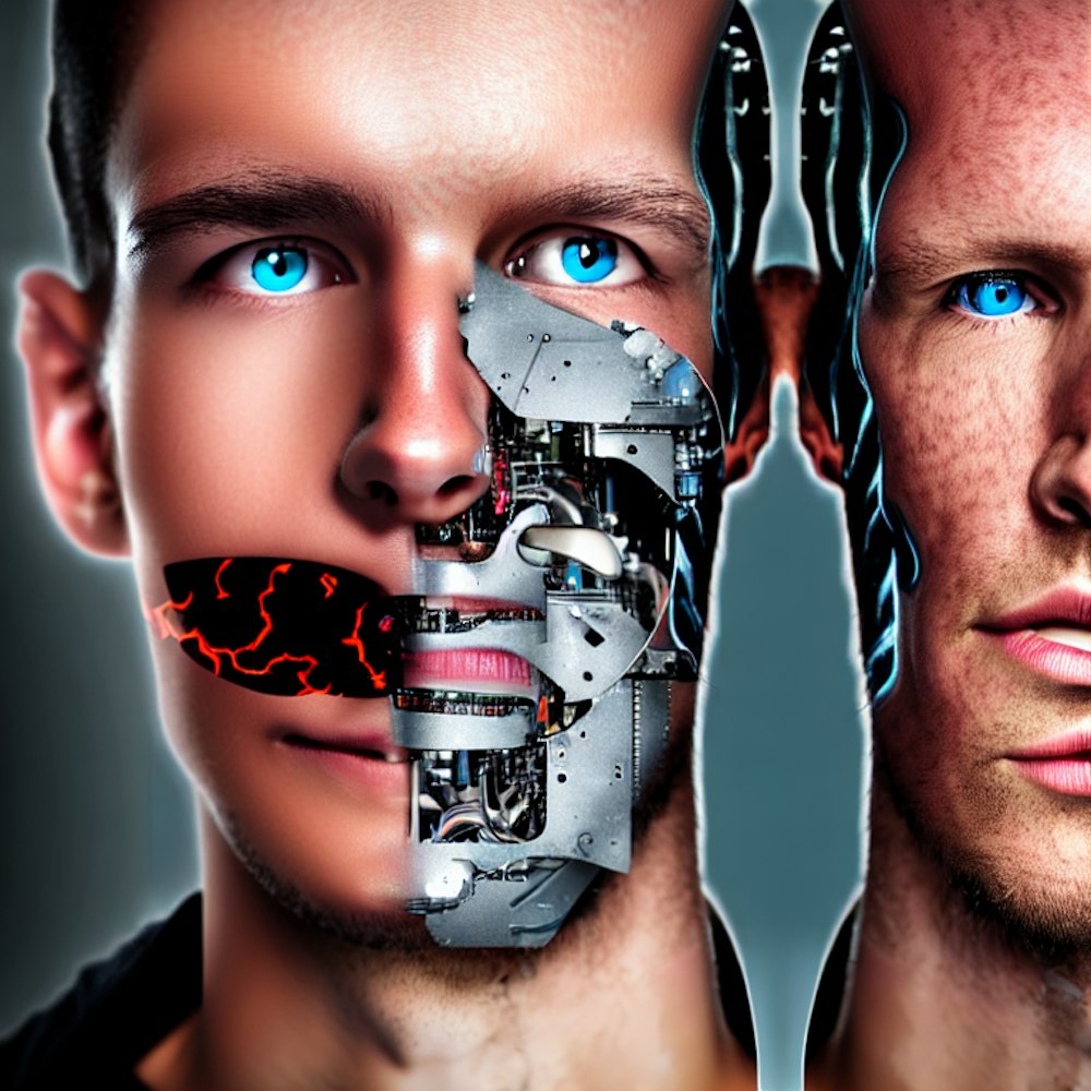 a cyborg mans face split in half