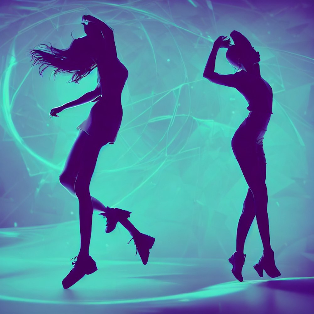 Create A Dynamic Cover Artwork For A Song In The Style Of Electronic Music. Dancing Figure, Dressed In Modern And Stylish Attire, Sillhouette, Beautiful Woman