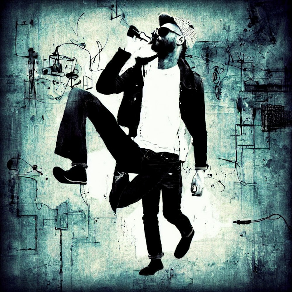 Create a dynamic cover artwork for a song in the style of indie band music. Man dressed in modern and stylish attire, should take center stage in the composition. conveying a sense of nostalgia and electronic energy.