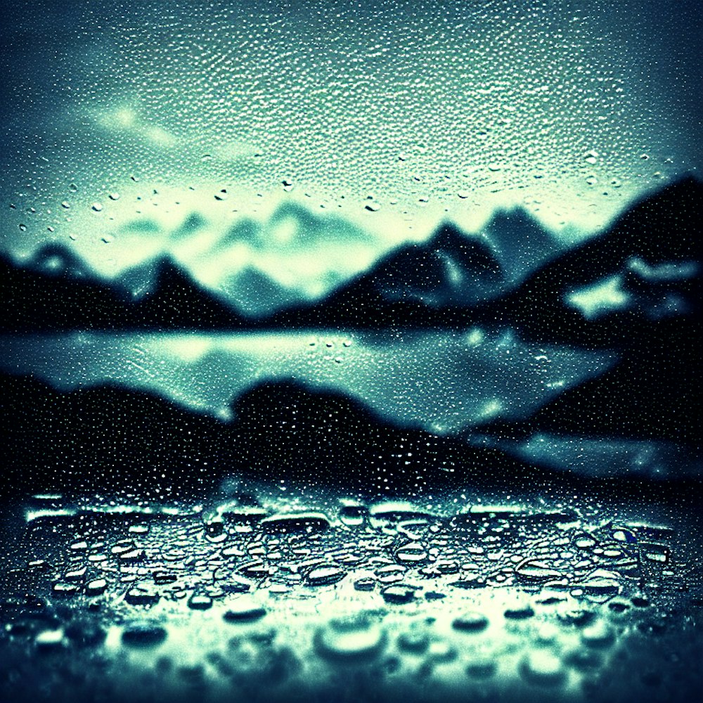 sad album cover with mountains and rain drops