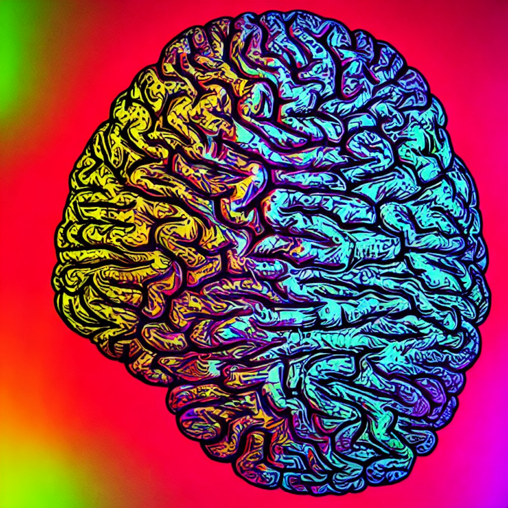 cover art, brain, wavy, melting, 80's colored, LED